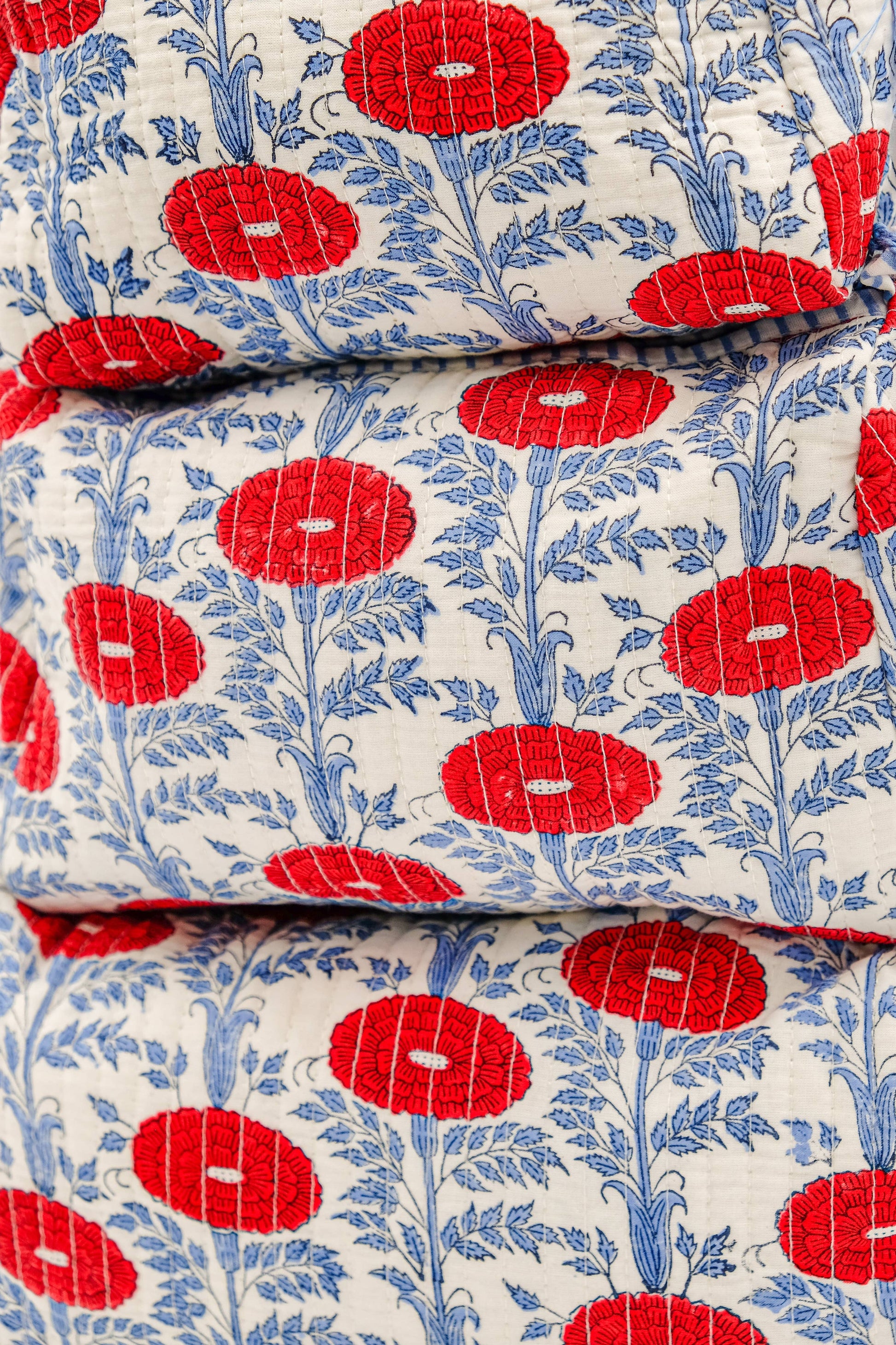 Take a little colour and joy where ever you go. These chic hand block printed cotton wash bags come in three sizes with a wipeable liner to suit your cosmetic and travel needs. Each bag has four internal pockets to store all your trinkets. Expertly block-printed by an eighth generation family of artisans in Jaipur, the artisans are stewards of a craft that has been passed down to them generation after generation. From the master block makers who carve the blocks in a village to the hands that print the bag, there are many hands that go into making each piece.