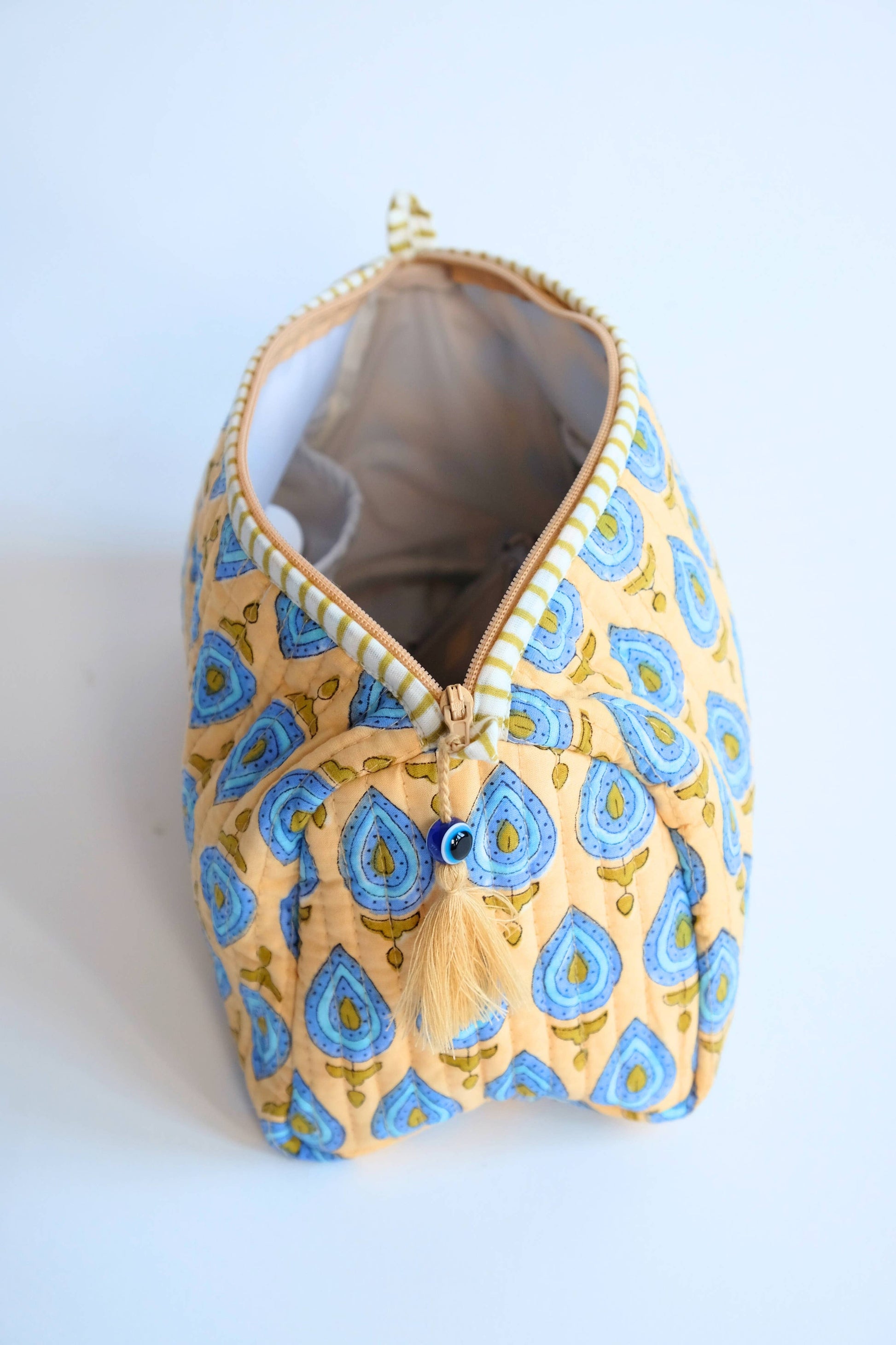 Take a little colour and joy where ever you go. These chic hand block printed cotton wash bags come in three sizes with a wipeable liner to suit your cosmetic and travel needs. Each bag has four internal pockets to store all your trinkets.