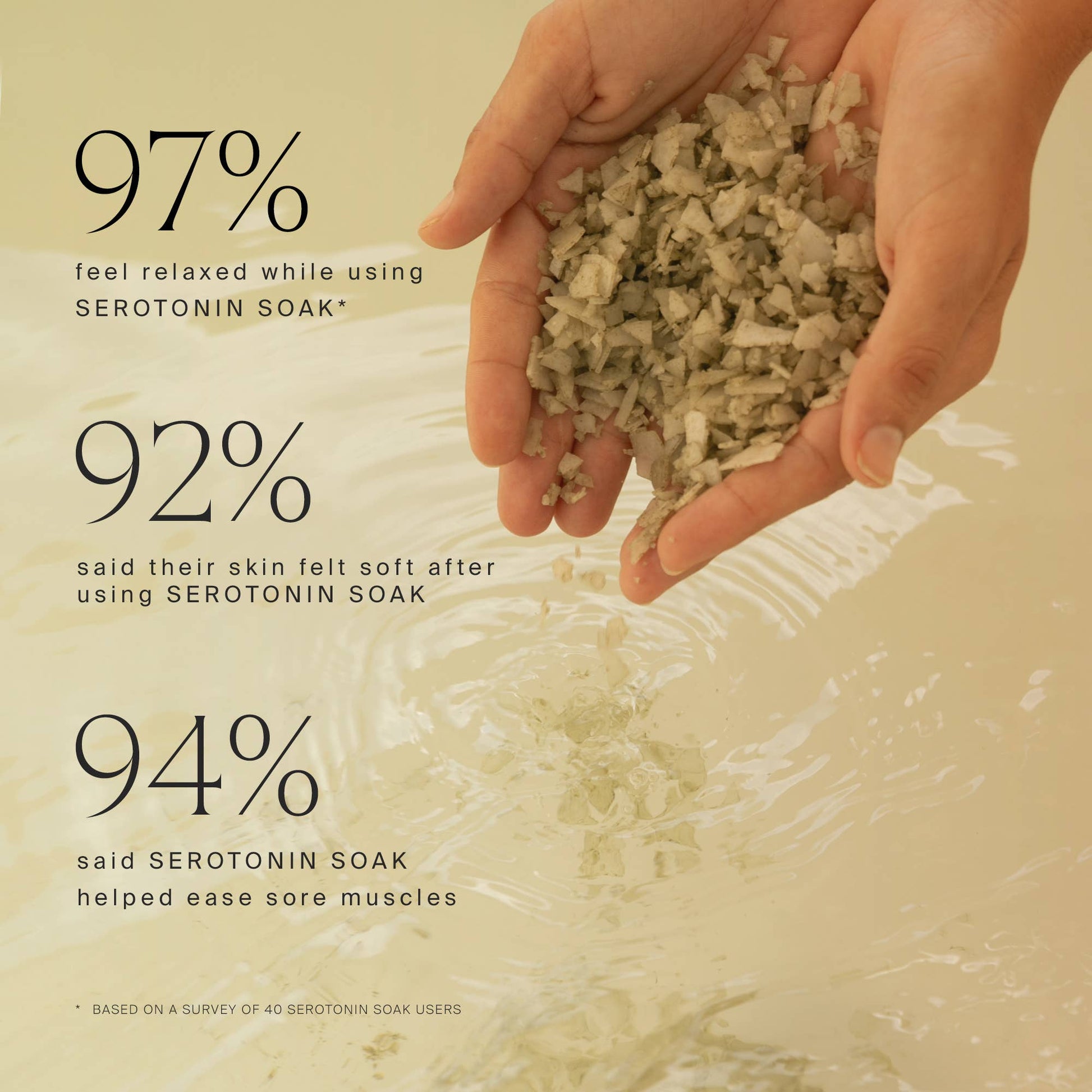 We combined the ancient art of bathing & the purest, science-backed ingredients available (Magnesium Zechstein Flakes, French Green Clay, Apple Cider Vinegar, Essential Oils) to formulate SEROTONIN SOAK. You can’t buy happiness, but you can bathe in it.